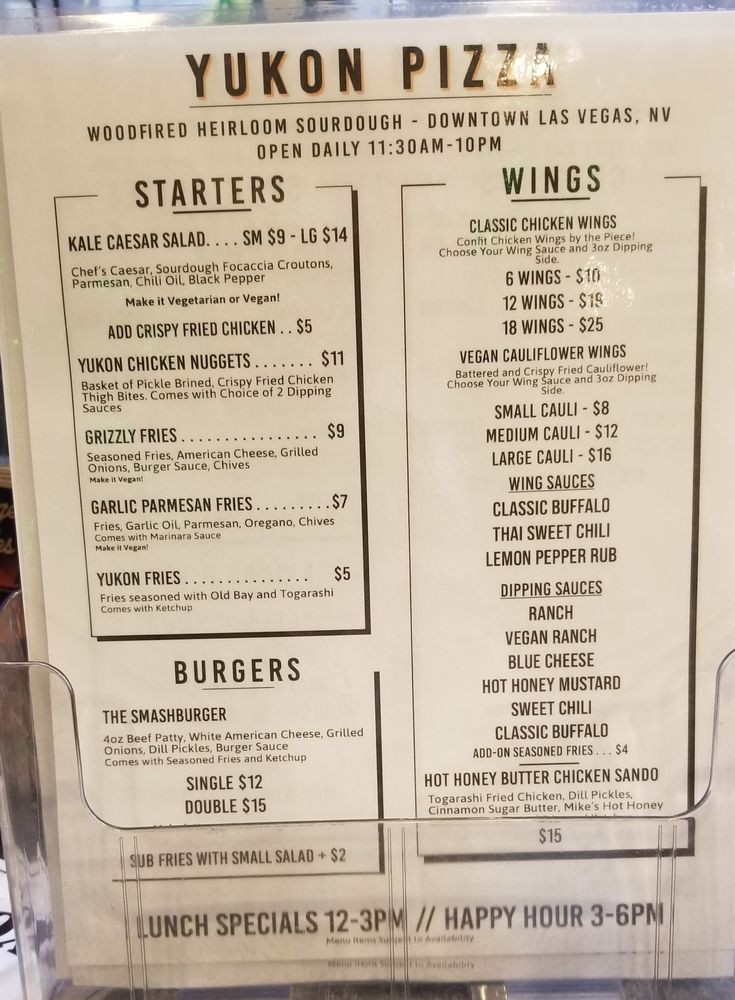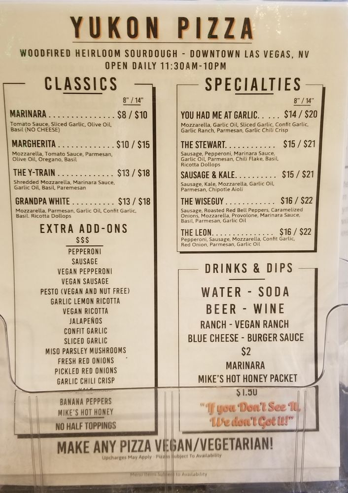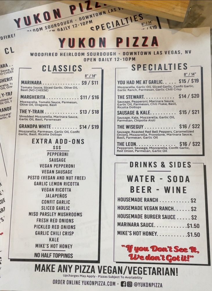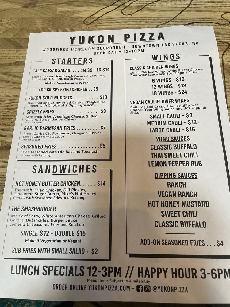 If you're looking for a pizza place in Las Vegas that offers a unique dining experience, look no further than Yukon Pizza. This Latinx and women-owned establishment not only serves up delicious wood-fired pizza with a sourdough crust passed down through generations but also caters to a wide range of dietary preferences, including vegan and vegetarian options. Customers rave about the crispy buffalo cauliflower and the variety of pizza options available. The cozy atmosphere, friendly service, and mouth-watering pies like The Stewart and Grandpa White make Yukon Pizza a must-visit destination for pizza lovers. With features like outdoor seating, happy hour specials, and a diverse menu including burgers, salads, and wings, Yukon Pizza is sure to satisfy your cravings and leave you planning your next visit.